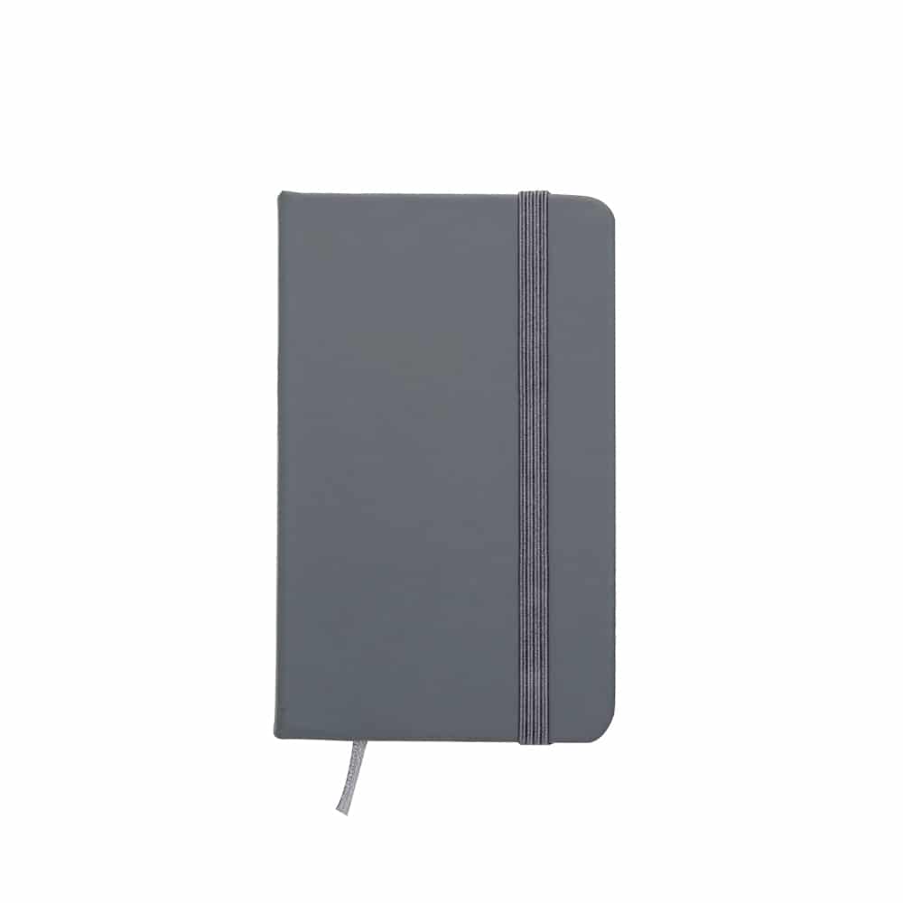 Caderneta emborrachada com elástico para lacre e marcador de página em cetim.