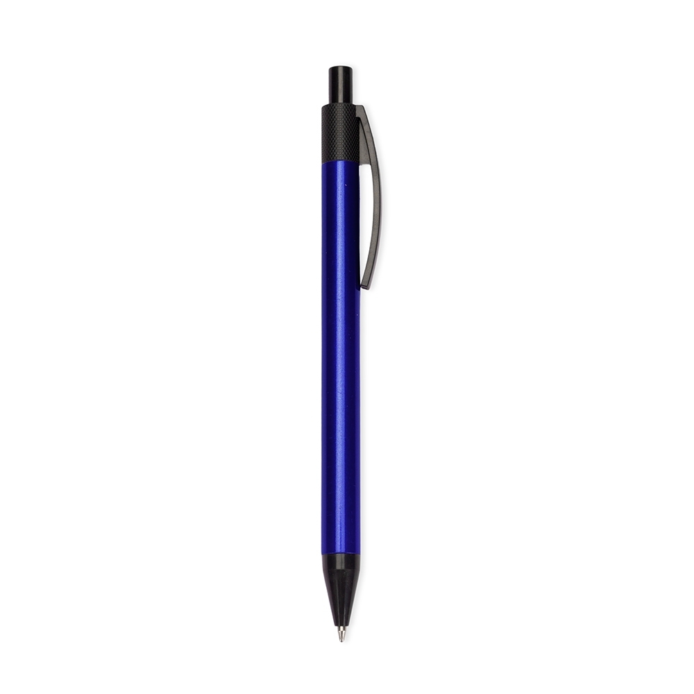Caneta de corpo metálico, ponteira e clip em plástico e acionamento por clique. Possui carga esferográfica azul de 1.0mm, proporcionando uma pegada leve para uma escrita precisa.