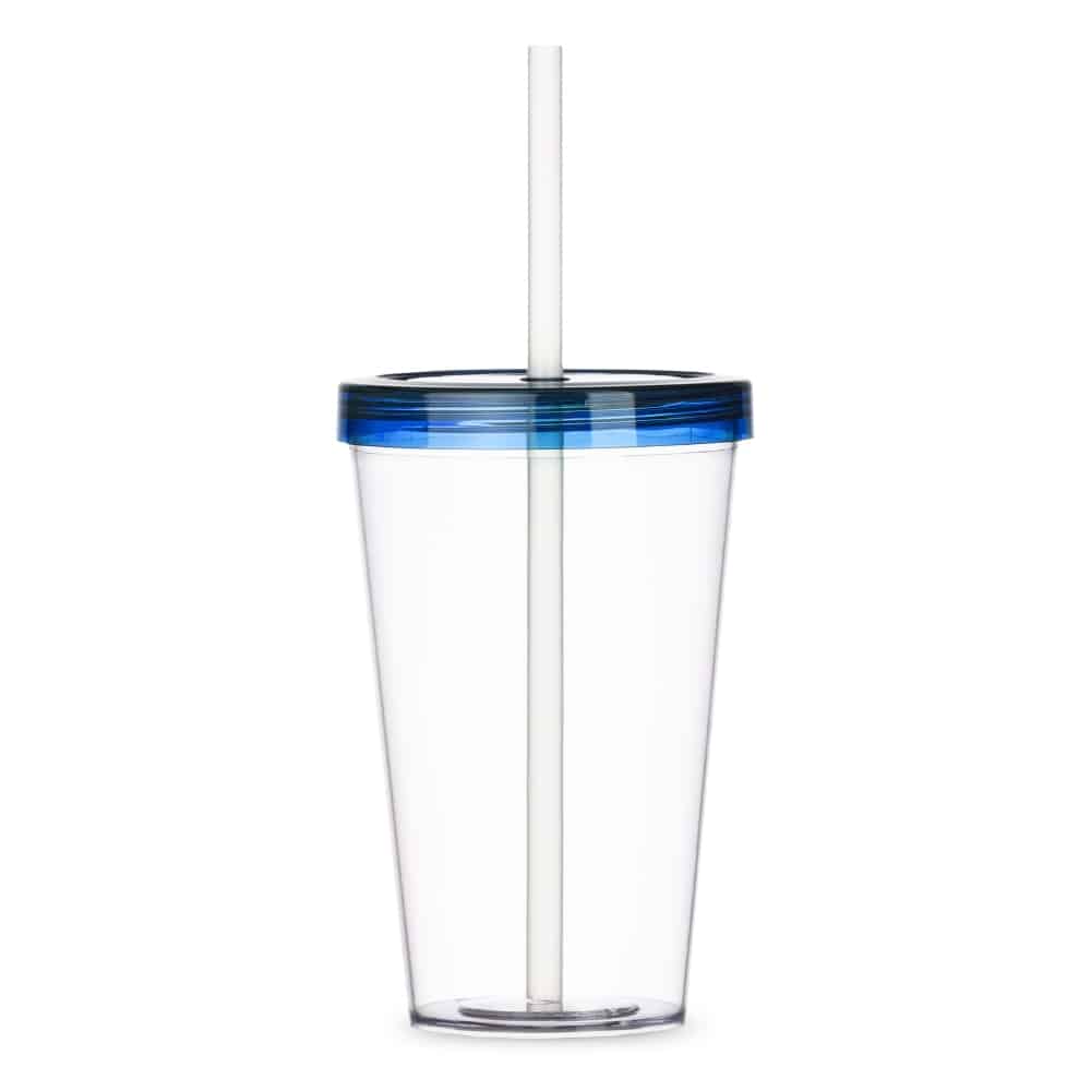 COPO C/ TAMPA E CANUDO SPX-P@14505-TRA/AZU NA COR TRANSPARENTE