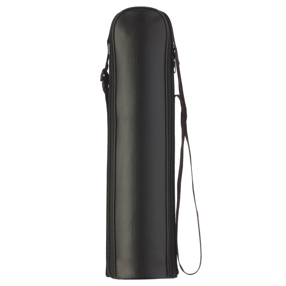 Garrafa térmica 1L em inox com tampa rosqueável, tampa interna em plástico resistente(basta um clique para abrir ou fechar). Acompanha capa protetora de couro sintético com alça em nylon e detalhe vermelho.